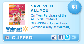Walmarts will be carrying a Special Smart Shopping Edition of the AllYou Magazine. And it may or may not come with your subscription. So, I would make sure you print out this hot $1.00 off All You Special Edition Coupon and take it with you- just in case.