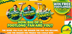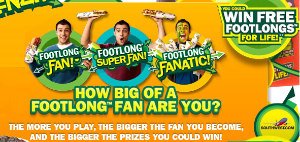 Subway has started a Subway Footlong Frenzy Instant Win Game! Now through March 8th, you can play for your change to win a gift card to Subway, 40 My Coke Rewards points, Free Subway Footlongs, Southwest Airlines Tickets, $1,000 Visa Gift Cards, or even a Jeep Compass!