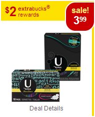 Use the $1.50 off U by Kotex Product printable coupon (sign in & share)