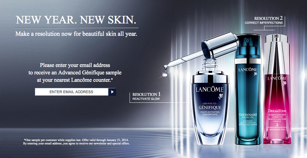 Hurry! Enter your email address on the Lancome site and you will receive a coupon valid for a FREE Advanced Genifique Sample at your nearest Lancome Makeup Counter!