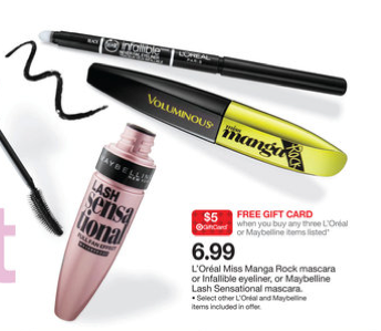 Purchase 3 Select Maybelline or L’Oreal Products, Get a $5 Target Gift Card