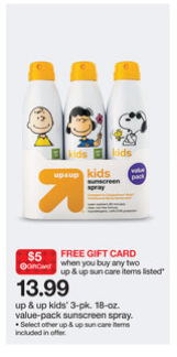 Purchase 2 Select Up & Up Kids Sunscreen 18 oz 3 pk Sprays, Get a $5 Target Gift Card