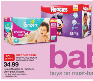 Purchase 2 Select Diapers, Get a $10 Target Gift Card
