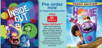 Pre-order Inside Out or Home, Get a $5 Target Gift Card with movie delivery