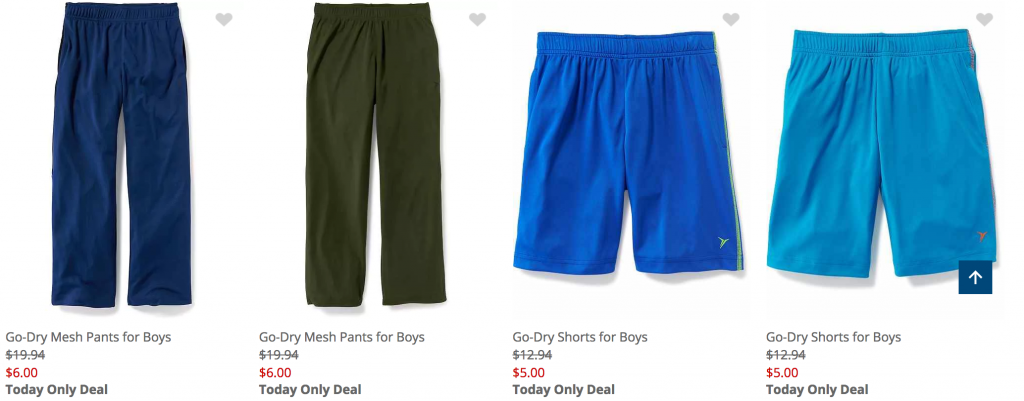 Head over to Old Navy where today only, August 3rd, you can get Active Pants & Shorts for Kids for just $6.00! This offer is valid online and in-store. Select Go-Dry Active Tee’s are just $5.00 as well. These are great for gym class, recess, and more!
