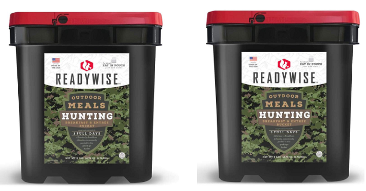 This would be great for hunting or your food storage! Walmart has the Ready Wise Hunting Food Calorie Booster Bucket, 3 Day Supply on sale for only $38.57 Shipped! (Reg. $95) Ready Wise Hunting Bucket. Boost your calories this hunting season by taking this lightweight and easy-to-transport bucket full of freeze-dried food. Need something quick to snack on? You got it. Looking for a drink to boost your calories and protein? Want a full meal for breakfast, lunch or dinner? No problem. Rip open one of our breakfast or entree pouches, add water, wait for 10-15 minutes and enjoy.