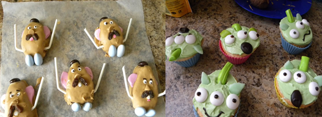 Natalie: “Toy Story Alien Cupcakes” and “Mr. Potato Head Chocolate Cake”