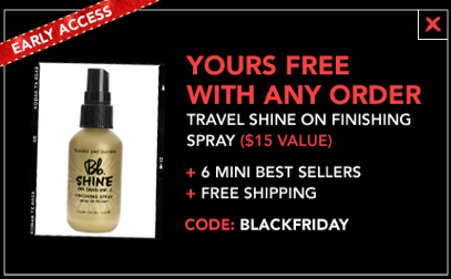 Right now Bumble & Bumble is offering FREE shipping & 6 FREE Mini Best Sellers with ANY Purchase when you use coupon code BLACKFRIDAY at checkout!