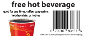 Flying J & Pilot Travel Centers are offering fans a FREE Hot Beverage. Simply head over to their Facebook page, “like” them, and print your coupon.
