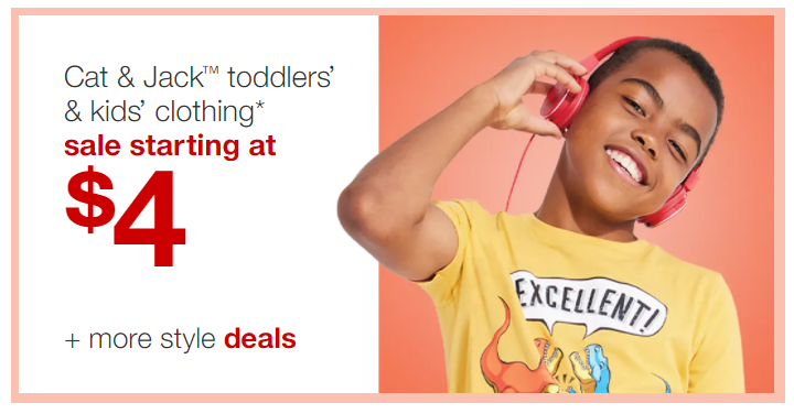 Target has Kids & Toddler Clothing on Sale From $4! No coupon code required, you’ll see the prices as marked. There are a lot of different styles to choose from at super low prices. Plus, you can use your Target Redcard to save an additional 5% off and score free shipping.