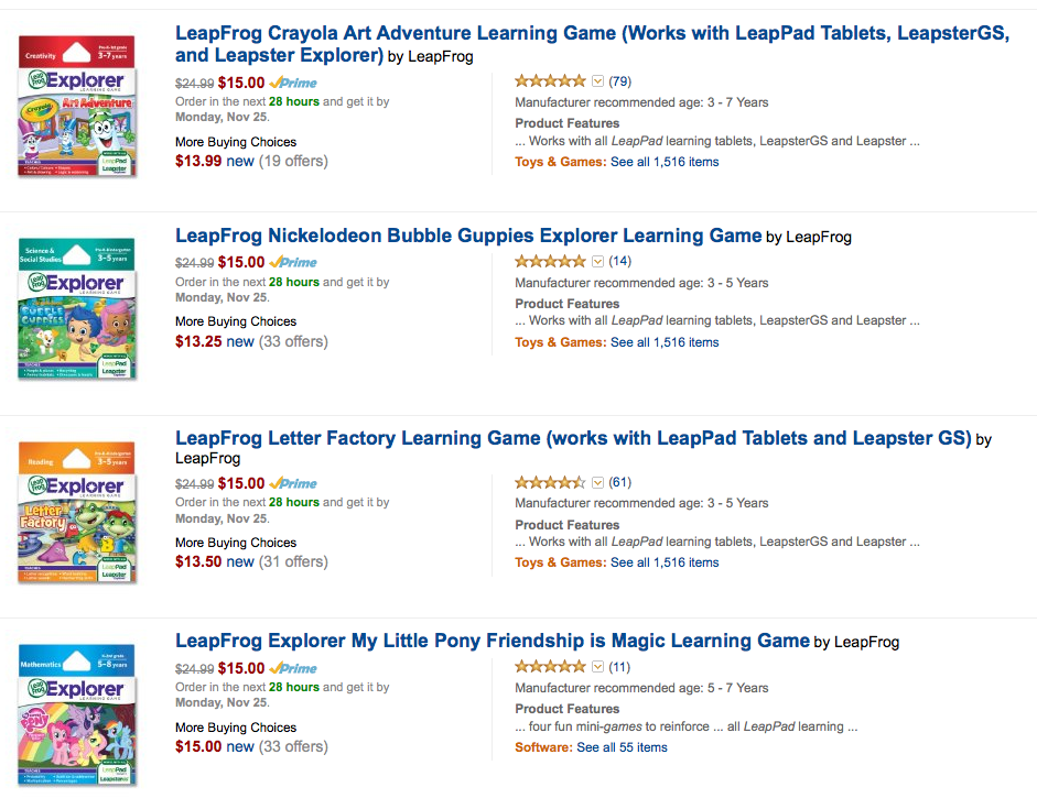 Hurry! Amazon has a selection of LeapFrog Learning Games priced at only $15.00 each! That is an awesome price for a LeapFrog game!