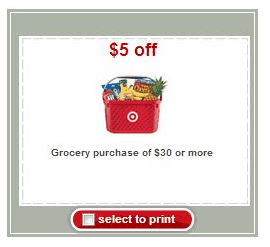 WOW! Hurry over to the Target site and you can print off a coupon for $5 off any $30 purchase at Target! This is a HOT coupon that will probably reach it’s print limit fast.