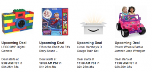 Each morning take 2 minutes, head to Amazon.com and scroll through the Lightning Deals. You can see what deals are starting at what times. If there is something on your Christmas list, and it is being featured as a lightning deal, set your phone alarm to be ready to go right before it starts!