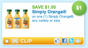 Coupons.com has a new coupon for $1.00 off of one Simply Orange Product!
