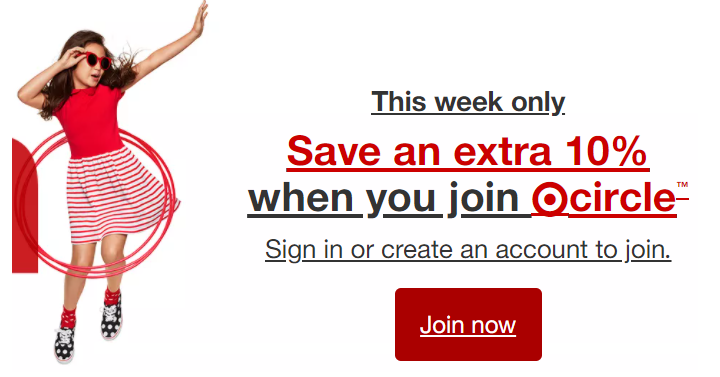 Sweet! This week only, Target offers an extra 10% off your purchases when you join Target Circle. You can sign in or create an account to join. There are some awesome deals with Target Circle this week that you can use this on. For example, you can save 30% off on Halloween Costumes AND 30% off on Halloween Candy Target Circle coupons. So sign up now and save big!